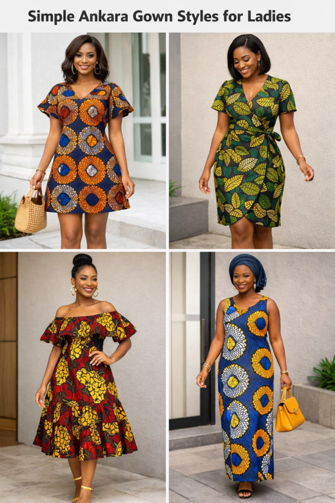 Start with your body type. Simple Ankara gown styles work best when they highlight your natural shape without feeling restrictive. A-line gowns flatter almost everyone, straight-cut styles give a clean and elegant look, while wrap or empire waist designs softly accentuate the waist and offer flexibility.